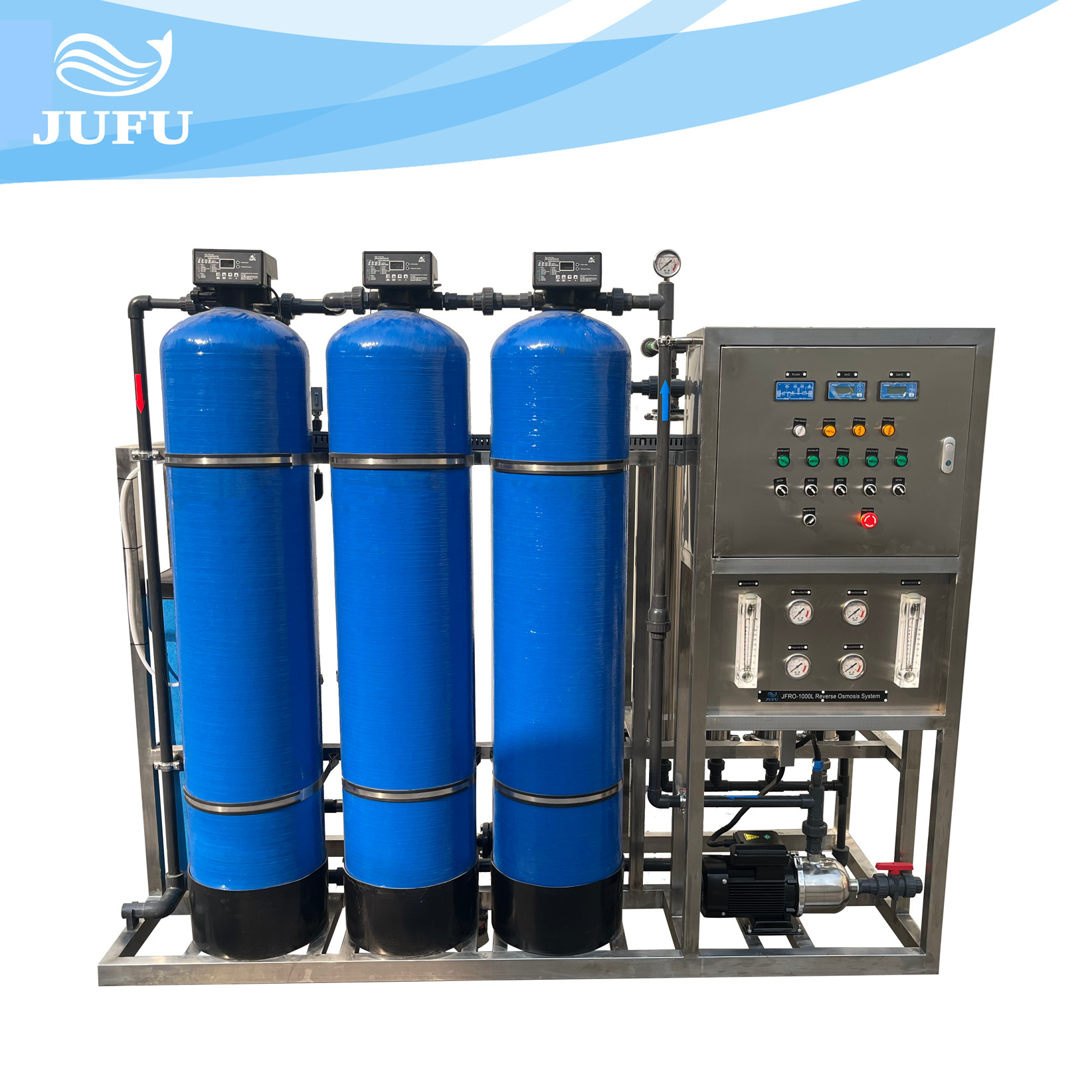 Μετά από μια ειδική υψηλή αντλία, όταν προστίθεται το ακατέργαστο νερό σε μια πίεση 6-20 κλ, το ακατέργαστο νερό διαπερνά μέσω της μεμβράνης αντίστροφης όσμωσης με ένα μέγεθος πόρων μόνο 0,0001 μικρών στο πλαίσιο δράση της πίεσης. Τα χημικοί ιόντα, τα βακτηρίδια, οι μύκητες, και τα virions δεν μπορούν να περάσουν μέσω, και απαλλάσσονται με το απόβλητο ύδωρ. Μόνο τα μόρια νερού και οι διαλύτες με έναν όγκο λιγότερο από 0,0001 μικρών επιτρέπονται για να περάσουν μέσω.